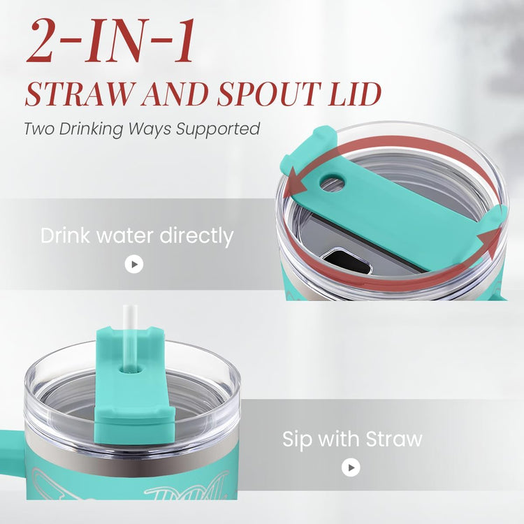 Stay hydrated your way with our 2-in-1 Straw and Spout Lid , the perfect companion for your 40oz stainless steel tumbler with handle . Designed for versatility and comfort, this innovative lid lets you drink directly from the spout or sip with a reusable straw — no need to switch lids or carry extra accessories